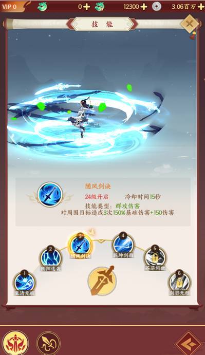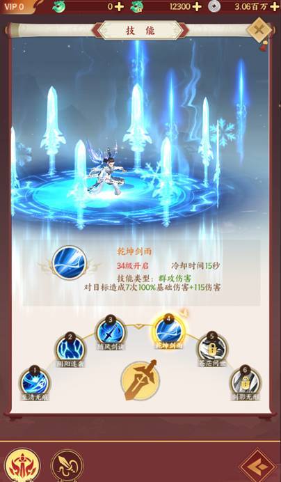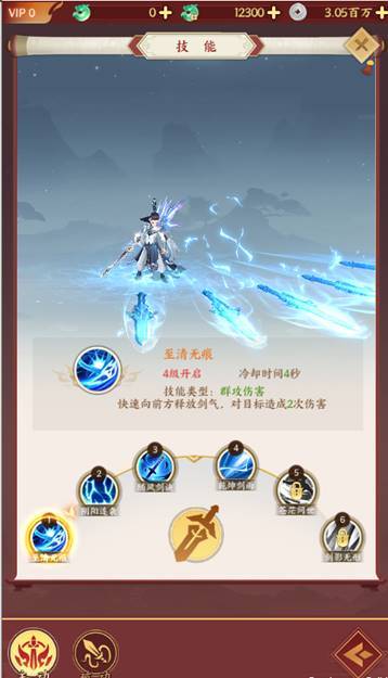 技能效果:快速向前方释放剑气,对目标快速造成2次伤害。